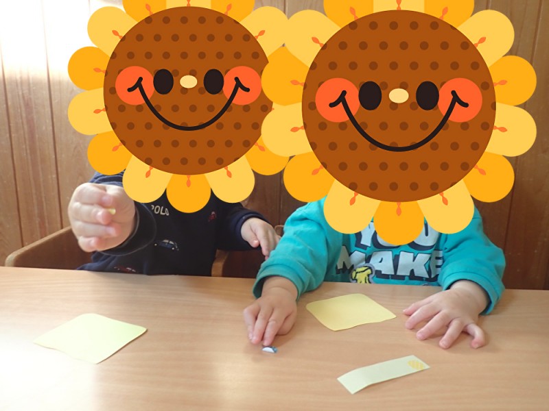 0歳児の子どもたちがシール貼りを楽しんでいましたよ♪