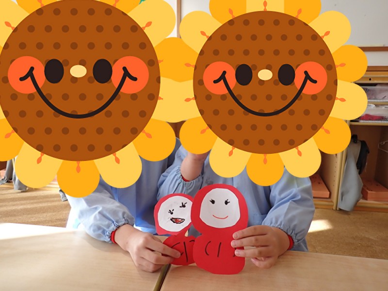 こどもたちが可愛いだるまさんを作っていました。