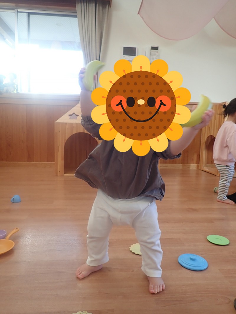 バナナを両手に持って音を奏でて楽しんでいましたよ♪