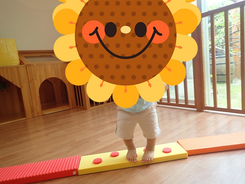 0歳児の子どもたちが巧技台を繋げて床に落ちないようにおっとっとぉ~!!と、楽しんでいました♪